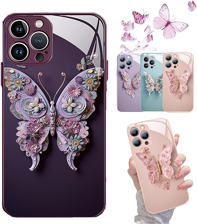 - 【Flat 3D Butterfly Pattern Glass Cover】For a moment I thought the ones on this phone were real butterflies! The 3D effect is incredible and the butterfly is so exquisite! Constructed with premium materials, this phone case delivers optimal protection.