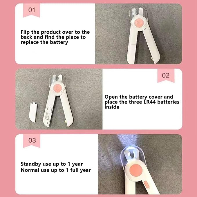 - ☢Easy to use: These nail trimmers have simple and convenient operation, suitable for beginners who want to help trim their pet's nails neatly and beautifully. When you cut gently, the LED light illuminates the nail bed and prevents you from cutting too deep.