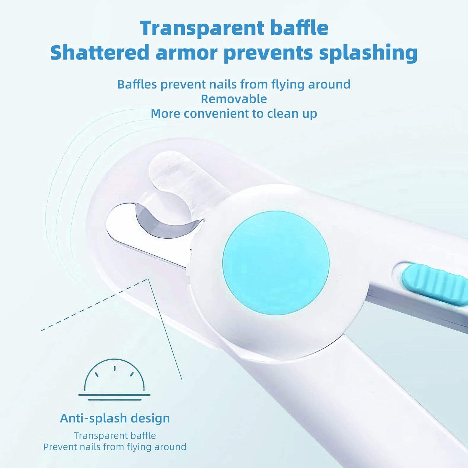 - ☢Maintain Cleanliness and Hygiene: With a splash-proof design, this cat nail trimmer with LED light prevents nail debris from flying onto you or your pet. Easy to clean after use.